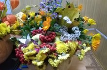 В детском саду организовали осеннюю выставку. Из осеннего урожая овощей, а также цветов составили красивые композиции- корзинки из тыкв, наполненных цветами, а также корзины из овощей.