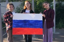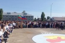 Внос флагов Российской Федерации и Республики Татарстан на торжественной линейке, посвященной 1 сентября. 01.09.2023