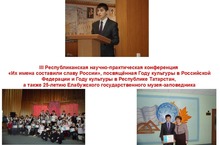 III Республиканская научно-практическая конференция «Их имена составили славу России», посвящённая Году культуры в Российской Федерации и Году культуры в Республике Татарстан, а также 25-летию Елабужского государственного музея-заповедника 08.02.2014