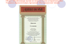 1 место в номинации "Компьютерная презентация, созданная в Prezi" ученики 9в класса Муллахметов Айдар и Каримов Ильгиз