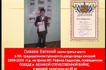 Сиваев Евгений ученик 3а класса занял третье место в XIX- традиционном турнире по дзюдо среди юношей