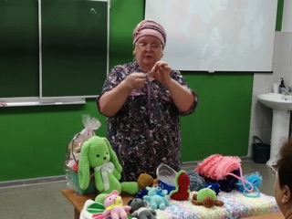 В 7г классе в преддверии Дня матери Венера Рамазановна поделилась своими умениями и показала мастер-класс по вязанию игрушек и мочалок.