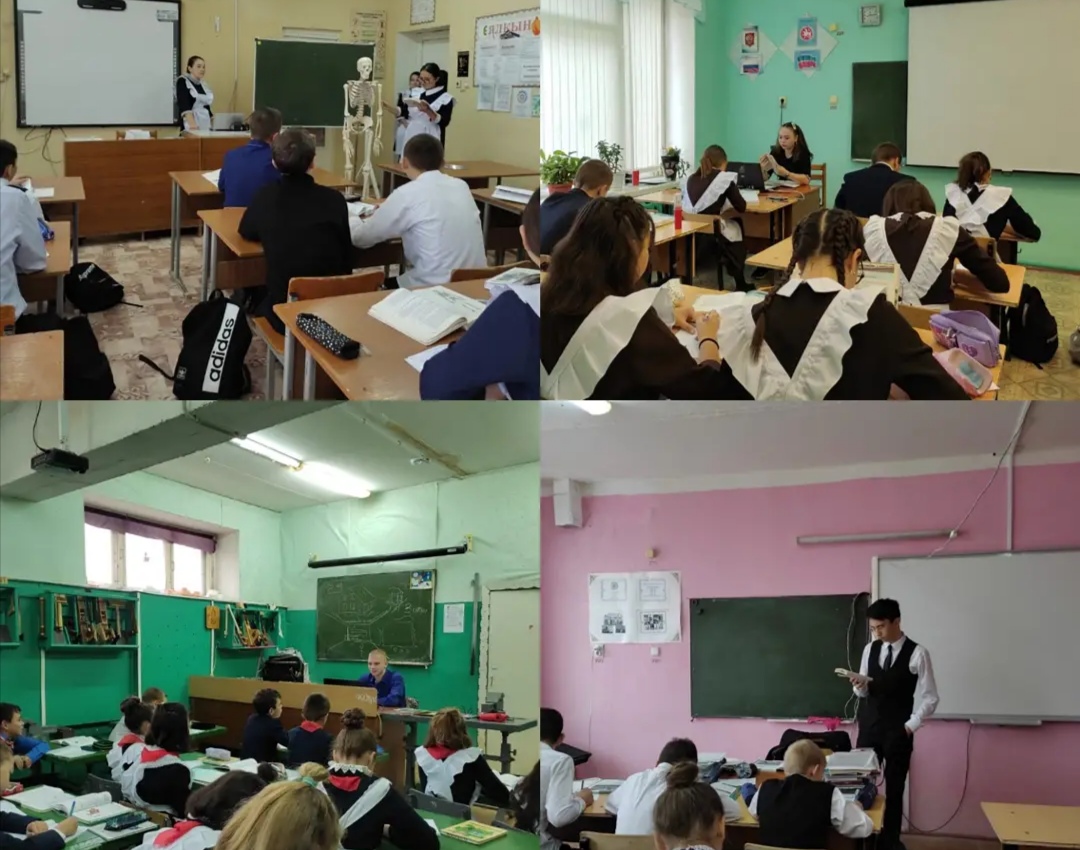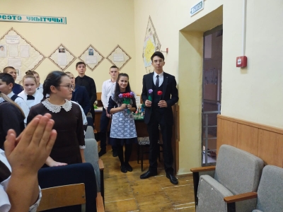 | У нас учат: | 29 учителей/ укытучы, 2 воспитателя/тәрбияче, 1 библиотекарь, 1 советник, 1 педагог-организатор, 1 педагог-психолог) |