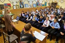 | У нас учат: | 29 учителей/ укытучы, 2 воспитателя/тәрбияче, 1 библиотекарь, 1 советник, 1 педагог-организатор, 1 педагог-психолог) |