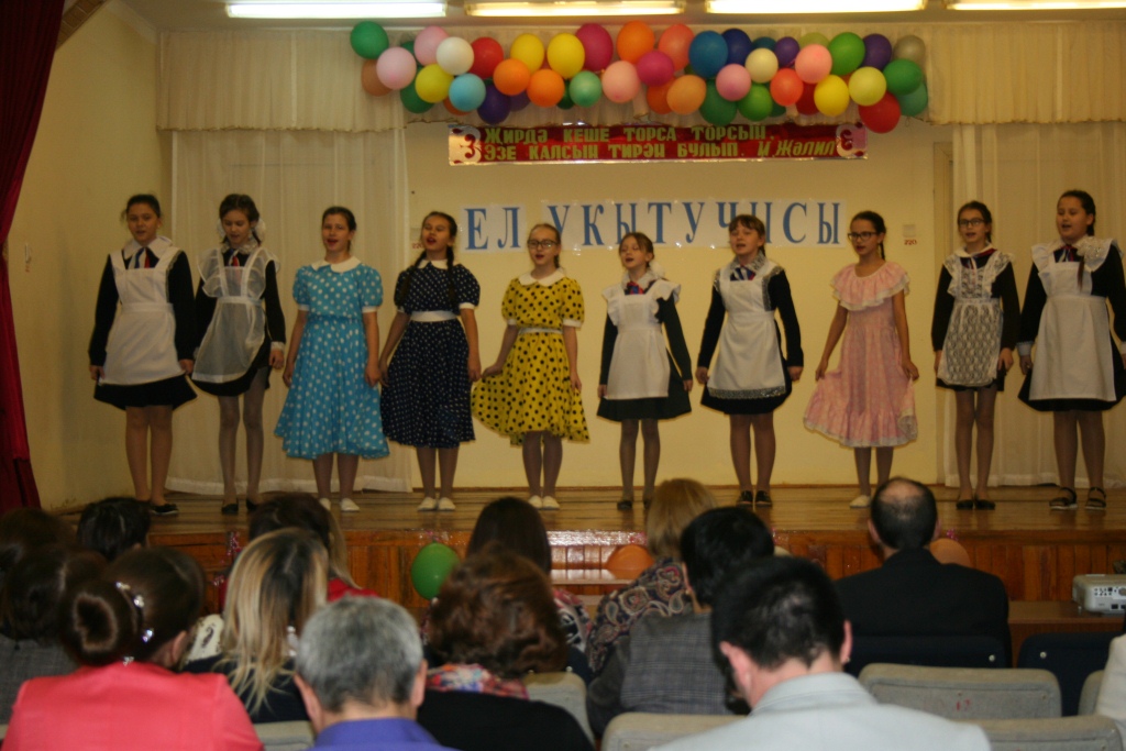 | У нас учат: | 29 учителей/ укытучы, 2 воспитателя/тәрбияче, 1 библиотекарь, 1 советник, 1 педагог-организатор, 1 педагог-психолог) |