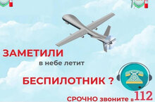 ВНИМАНИЕ! Сообщите о БПЛА по номеру "112", назовите время и место, примерный курс полета, его визуальные особенности, а также свои данные.