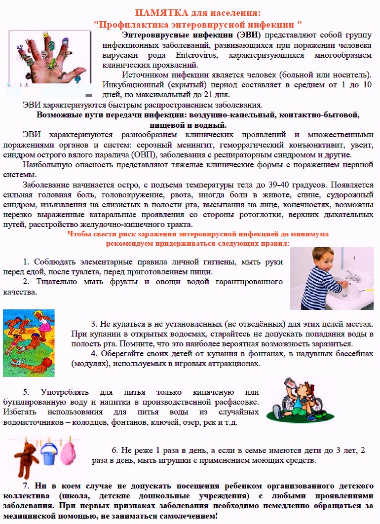 Памятка для родителей "Профилактика энтеровирусной инфекции" 25.07.2025