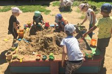Сегодня в нашем детском саду прошел праздник "Песочный город". Целью мероприятия было развитие дружеских отношений между детьми разного возраста во время совместных игр, воспитание коммуникативных качеств. Помимо этого решался ряд задач, основными из которых были развитие познавательных и конструктивных способностей, а также формирование детской любознательности и наблюдательности. Воспитатели знакомили детей на прогулке со свойствами песка: его сыпучестью, водопроницаемостью, фильтрующими качествами. Ребята выяснили, что песок состоит из отдельных песчинок, которые не скреплены между собой и рассыпаются. Но если песок увлажнить, песчинки слипаются друг с другом и тогда из песка можно делать постройки. Ребята вместе с педагогами строили из влажного песка крепости и замки, украшали их подручным материалом, а затем дружно все вместе играли в песочных городах. На вечерней прогулке устроили конкурс рисунков на песке: рисовали веточками, пальцами и даже детскими грабельками! Малыши узнали много нового о том, что их окружает. День прошёл ярко и увлекательно.