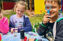 Лето – самое хорошее время года для проведения опытов с солнечным светом, воздухом, водой, песком. Чем полезно детское экспериментирование? Поисково-познавательная деятельность открывает для ребенка новый мир, полный загадок и чудес. У детей углубляются знания о природе – живой и неживой, они расширяют свой кругозор, учатся размышлять, наблюдать, анализировать и делать выводы. У детей появляется контакт с предметами, что позволяет понять их качества и свойства. И, конечно, детское экспериментирование позволяет ребятам чувствовать, что они самостоятельно открыли какое-то явление, и это влияет на их самооценку. Сегодня в детском саду прошел «День опытов и экспериментов», цель которого: привлечь внимание детей к такому виду деятельности как экспериментирование; познакомить детей с некоторыми свойствами воздуха и воды, научить проводить несложные опыты с использованием подручных средств и предметов; учить рассуждать, анализировать, делать выводы и объяснять с научной точки зрения. В процессе экспериментирования дети получили возможность удовлетворить присущую им любознательность, найти ответ на множество интересующих вопросов: Почему? Зачем? Как? Что будет если? Высказывали своё мнение, предугадывали ожидающие результаты. Праздник получился очень интересным и познавательным.