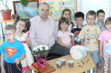 В гостях у детей побывал ветеран Великой Отечественной войны, который дошел боями до Берлина, который рассказал о тех боевых временах, а ребята задавали ему вопросы. Затем дети и воспитатели поблагодарили уважаемого ветерана за интересные воспоминания! Пожелали мирного неба, благополучия, здоровья и долгой жизни! А всем воспитанникам пожелали вынести из этой встречи любовь к жизни, умение любить всем сердцем Родину – нашу великую Россию, как любили ее погибшие на войне, любить в самих себе – делание добра. В конце занятия дети преподнесли ветерану подарок и цветы.