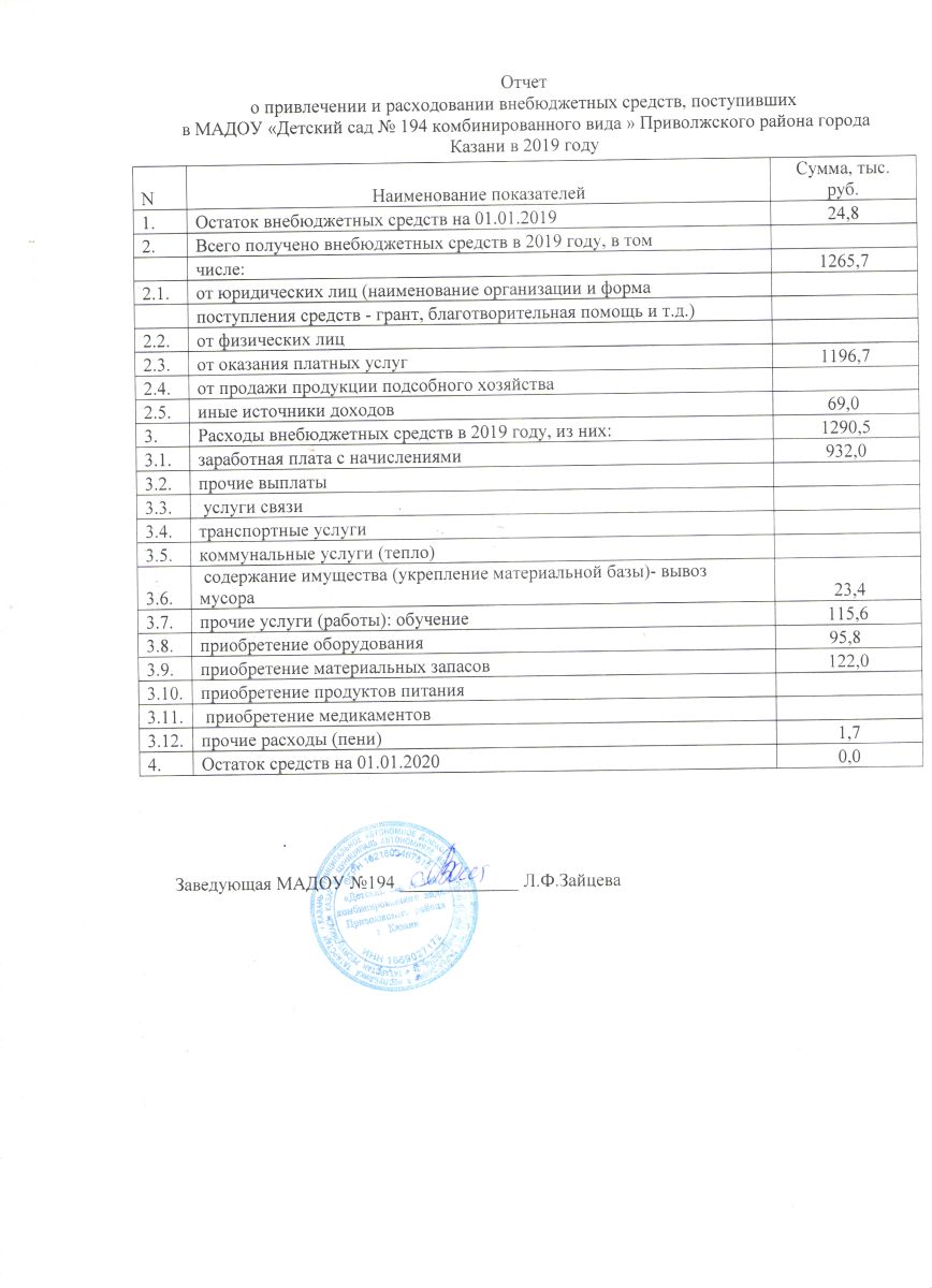 Отчет о привлечении и расходовании внебюджетных средств за 2019