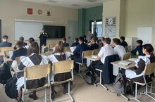 Испектор Ямалов М. юл йөрү куркынычсызлыгында яңа кагыйдәләр, знаклар барлыкка килү белән 6б, 9а, 6а сыйныфы укучыларын, ә башлангыч сыйныф укучыларын инспектор Гиниатуллина М. П. таныштырды. Фотосурәттә 4а сыйныфы укучылары. Үз гомеребезне куркыныч астына куймыйча, юлларда сак булсак иде