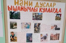 Шул уңайдан, укучыларыбыз катнашында күргәзмә оештырылды. Күргәзмәгә, укучылар үзләренең йорт хайваннарына багышлап ясалган рәсем, плакатларын алып килделәр.