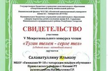 Поздравляем ученицу 7Б класса Бадртдинову Камиллу с дипломом победителя отборочного тура международного социально - образовательного конкурса "Язык предков" !