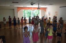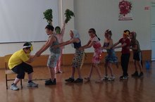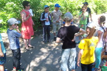 Затем ребят пригласили на торжественное открытие лагерной смены, где воспитатели показали ребятам костюмированное представление. Также проводились различные конкурсы на знакомство. Ребята играли в подвижные игры на свежем воздухе.