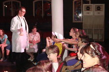 Сегодня 8 день лагерной смены в пришкольном лагере «Энҗе бөртекләре». После завтрака дети отправились в “Молодёжный театр на Булаке”, где их очаровали и порадовали интересными опытами, также на мероприятии присутствовал сам Д.И. Менделеев и А. Энштейн. После захватывающего представления, ребят пригласили на дискотеку. Также сегодня прошло мероприятие “Природа и мы”, где команды отвечали на занимательные вопросы по природоведению и выполняли интересные задания. Победители были награждены сладкими подарками.