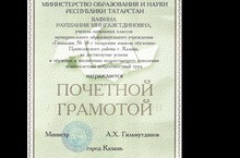 Поздравляем Вафину Раушанию Мингазетдиновну, учителя начальных классов, награждённую ПОЧЕТНОЙ ГРАМОТОЙ МОиН РТ за достигнутые успехи в обучении и воспитании подрастающего поколения и многолетний добросовестный труд!