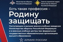 Уважаемый абитуриент! Выбирая вуз Министерства обороны Российской Федерации для получения высшего образования, Вы выбираете широкие возможности для самореализации, достойный уровень жизни, высокий социальный статус. Вы выбираете профессию офицера, а офицерский корпус - главный стержень Вооруженных Сил России. Нравственные качества, умственные и физические способности, которые Вы приобретете во время учебы, позволят Вам стать ценным специалистом в своем деле и занять достойное место в обществе. В этом Вам помогут лучшие педагоги, командиры, специалисты, которые собраны в вузах Минобороны России. Особое место в образовательных программах российских военных вузов занимает развитие характера и привитие лидерских качеств будущим офицерам. Осваивая «науку побеждать», Вы получите не только профессиональные навыки, но и значительно расширите свой кругозор, научитесь работать с людьми, находить правильные ответы на непростые вопросы, которые задает нам сама жизнь. Военное образование - правильный выбор патриота России!