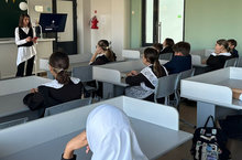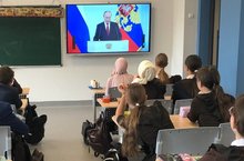 һәр атнаның пәнҗешәмбесендә гимназиядә профориентация юнәлешендә дәресләр үткәрелә. Бүген 8- 11 сыйныфлар өчен "В. Г. Тимирясов исемендәге Казан инновация университеты" вәкиле белән очрашу уздырылды. Укучылар университетның эшчәнлеге, студентлар тормышы, әлеге уку йортына керү тәртибе белән таныштылар.