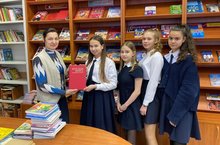 Сегодня ученики 7Б класса передали библиотеке гимназии Красную книгу РТ, которую им вручили начальник Управления охраны животного и растительного мира госкомитета Ринат Чиспияков и начальник отдела водных биологических ресурсов Ирина Мустакимова.