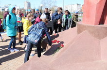 Ученики гимназии №19 провели в Сквере Славы праздничный митинг, посвященный семьдесят третьей годовщине Победы в Великой Отечественной войне.
