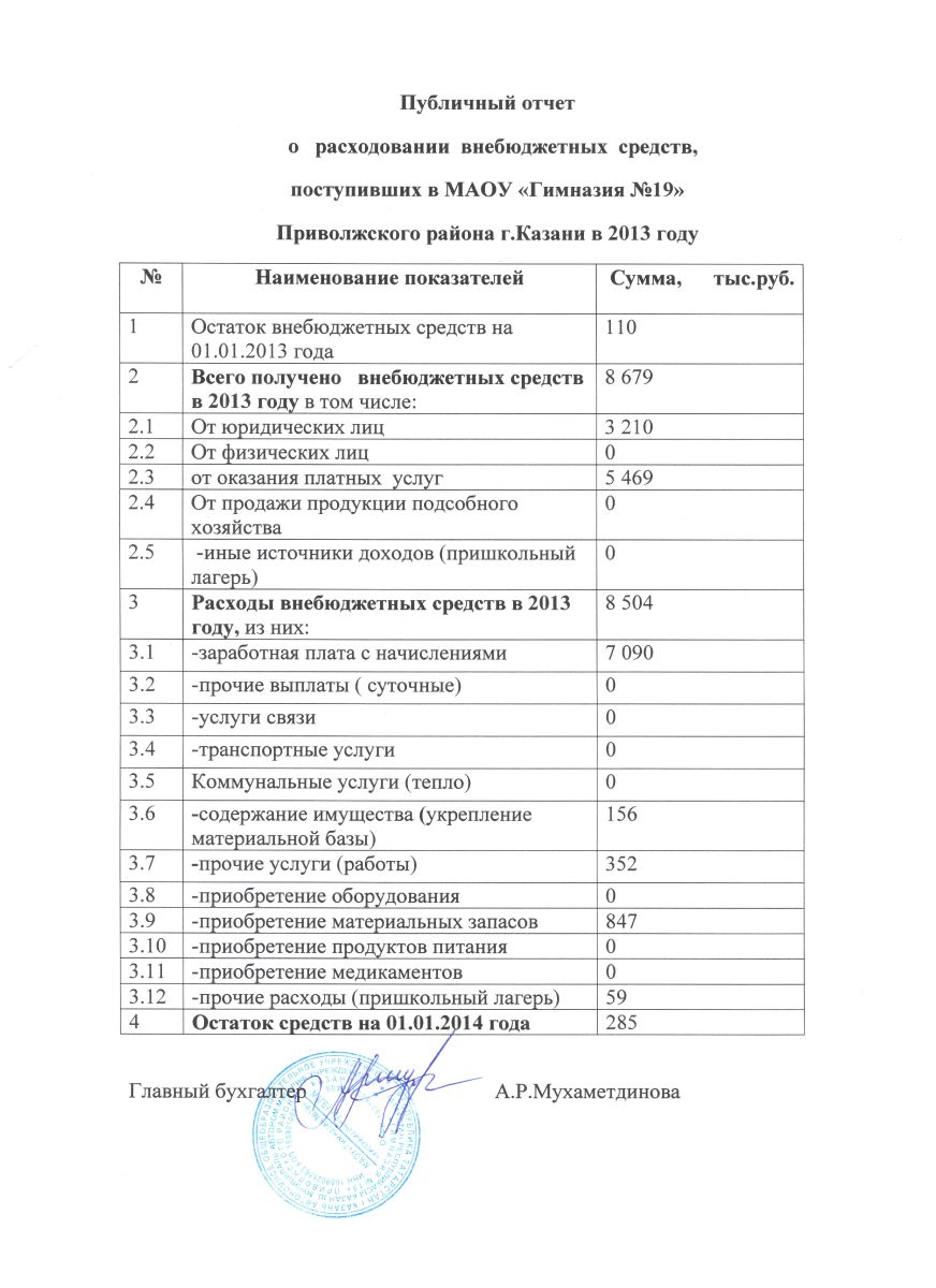 Отчет о привлечении и расходовании внебюджетных средств учреждения за 2013 год