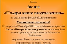 Об акции "Подари книге вторую жизнь" 01.10.2015