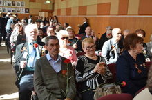 Стоя, зал приветствовал ветеранов педагогов участников и тружеников тыла Великой Отечественной войны. Воспитанники учреждений дополнительного образования вручили им цветы и памятные сувениры.