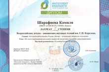 образовательной программы "ИНТЕЛЛЕКТУАЛЬНО-ТВОРЧЕСКИЙ ПОТЕНЦИАЛ РОССИИ" МАН "Интеллект будущего". В Чтениях приняли участие 136 школьников и студентов из более, чем 10 регионов Российской Федерации. Республику Татарстан представляла Шарафиева Камиля, ученица 9 класса средней общеобразовательной школы №35 Приволжского района г. Казани (руководитель: Кузьмина К.И., учитель биологии). Научно-исследовательский проект "Выращивание растений в условиях