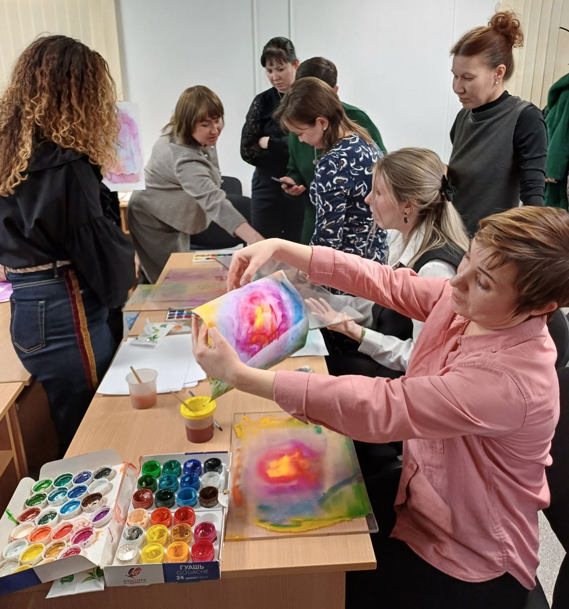 27 февраля 2024 года на базе отдела образования по Вахитовскому и Приволжскому районам г.Казани прошло заседание районного методического объединения учителей эстетического цикла на тему «Активные формы и методы преподавания предметных областей «Искусство» и «Технология» в условиях реализации ФГОС». Руководителем мероприятия была методист УМС ИМО по Вахитовскому и Приволжскому районам г.Казани Карташова Е.В. Заседание было организовано с целью совершенствования мастерства и профессиональной компетентности учителей эстетического цикла, применения в педагогической деятельности инновационных педагогических технологий. Очень яркими оказались выступления: учителя музыки МБОУ «Гимназия №96» Бальзамовой Г.И. Она познакомила учителей с театральной деятельностью, которая организована в школе, отметила плюс школьного театра - это возможность детей развиваться в творческой сфере. Принимая участие в постановках, они проявляют себя и раскрывают свои таланты. Ребята тренируют память, развивают творческие навыки, преодолевают комплексы, становятся раскрепощенными. А, главное, школьный театр - это содружество учащихся, педагога и, конечно, родителей. Актуальным было выступление Мусовой М.Г., учителя музыки МБОУ «Гимназия №6». Тема активных методов преподавания предмета музыки оказалась интересной для всех. Скичко Н.М., учитель технологии и изобразительного искусства МБОУ «Гимназия №21» провела мастер класс по нетрадиционному способу рисования в технике «акватипия». Галимова С.А., руководитель РМО учителей эстетического цикла Приволжского района в полном объёме раскрыла инновационные формы организации и обновления содержания технологического образования в учебно-воспитательном процессе. Нургалеева А.З., учитель музыки МБОУ «Лицей №35 «Галактика» познакомила с применением различных методов и форм обучения на уроках музыки в условиях реализации ФГОС. Дёмина Т.И., руководитель РМО учителей Вахитовского района остановилась на злободневной теме «МЭШ в практической деятельности учителя-предметника». Итог заседания-обмен опытом, повышение профессионального мастерства!