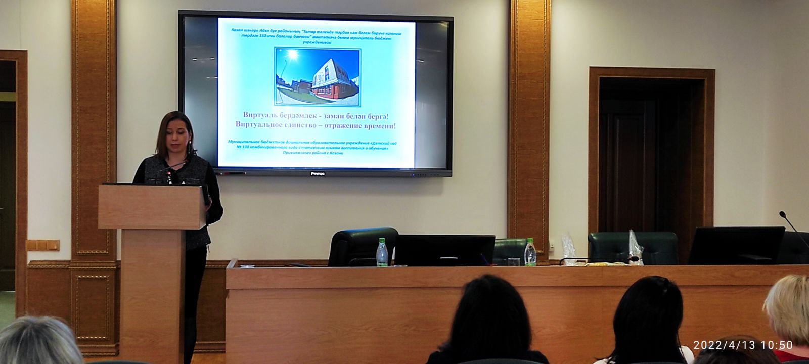 13 апреля 2022 г. в МОиН РТ состоялся 1 этап республиканского конкурса на соискание гранта «Лучший билингвальный детский сад». В конкурсном отборе – очной защите проектов детский сад №130 Приволжского района представил методический проект «Виртуаль бердәмлек - заман белән бергә!» («Виртуальное единство-отражение времени»), направленный на создание билингвальной образовательной среды в дошкольном учреждении, на сохранение и развитие государственных языков республики Татарстан. Пожелаем удачи коллективу детского сада в финальных испытаниях конкурса!