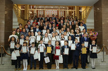 24 апреля в Государственном Совете состоялась торжественная церемония награждения победителей республиканских конкурсов детских рисунков, сочинений и эссе, состоявшихся в рамках «Парламентского урока – 2017». Кроме того, были отмечены победители онлайн-тестирования, посвященного 25-летию принятия Конституции Республики Татарстан, и юные герои. Лучшие из лучших были награждены дипломами и ценными подарками.Открывая торжественную церемонию, Председатель Государственного Совета Фарид Мухаметшин отметил, что депутатский корпус Парламентскому уроку придает исключительно важное значение. Председатель Государственного Совета считает, что традиция проведения Парламентских уроков обязательно будет продолжена.В этом году в рамках проекта конкурс творческих работ учащихся и методических разработок педагогов прошел по 12 номинациям. В республиканском этапе приняли участие 353 учащихся со всех муниципалитетов, также были представлены 44 методические разработки педагогов. В чествовании победителей приняли участие первый заместитель Министра образования и науки РТ Ильсур Хадиуллин, заместители Председателя Государственного Совета Римма Ратникова и Юрий Камалтынов, председатели профильных Комитетов парламента Марат Галеев, Леонид Якунин, Светлана Захарова и Тахир Хадеев.Среди победителей и призеров есть и учащиеся школ нашего района. Это – Броднева Анна (СОШ №98), Васенина Вероника (СОШ №39), Гарифуллина Аделя (СОШ №42), Яруллин Артем (Лицей №83). Поздравляем победителей. Желаем творческих успехов. -