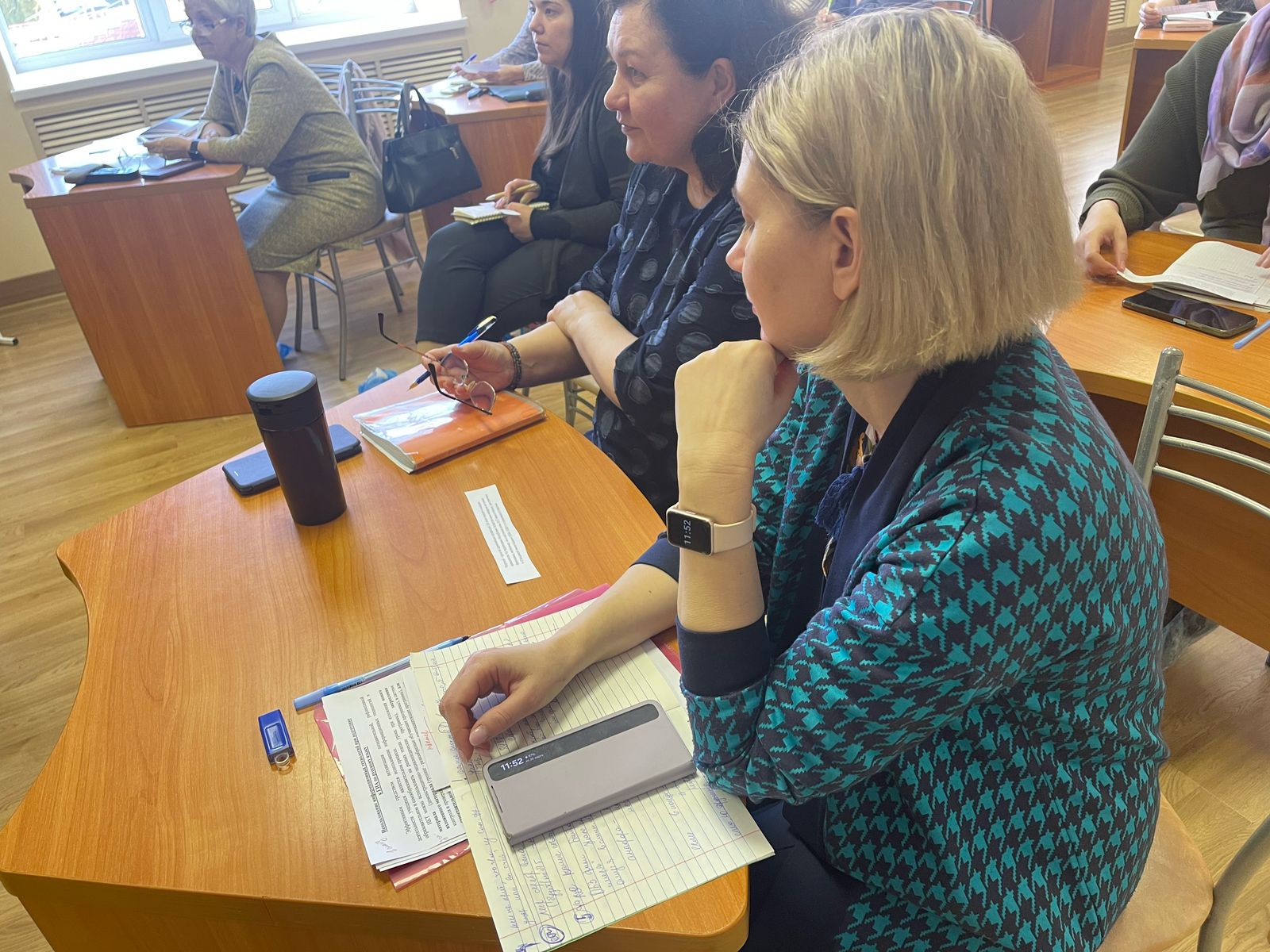 21 марта 2025 года на базе МАОУ «Гимназия 139-ЦО» состоялось заседание районного методического объединения учителей русского языка и литературы по теме «Методика обучения говорению при подготовке к итоговому собеседованию по русскому языку в 9 классе». На заседании учитель гимназии 139 Шириева Е.Н. рассмотрела практики и техники формирования навыков устной коммуникации на уроке, разграничила понятия коммуникативной компетенции и компетентности. Итоговое собеседование представляет собой проверку коммуникативной компетенции, таких видов речевой деятельности, как чтение и говорение. Далее были представлены приемы развития выразительного чтения как мастерства отражения ощущений и размышлений. Заместитель директора гимназии 139 Романова Л.Ю. осветила критерии оценивания устного собеседования по русскому языку для экзаменаторов-экспертов, а также особенности речевого поведения экзаменатора-собеседника.