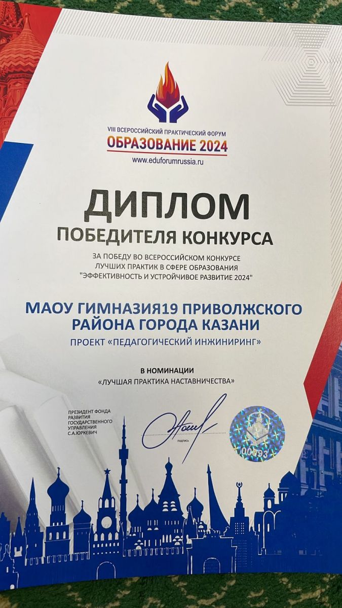 Команда 19 гимназии одержала победу с проектом "Педагогический инжиниринг" VIII Всероссийского форума "Образование 2024"