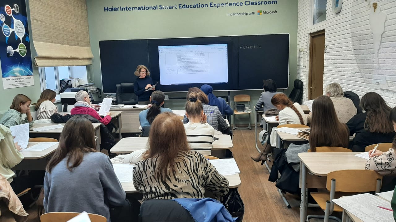Опубликовано: 29.11.202429 ноября 2024 года руководитель консалтингового центра, эксперт предметной комиссии по проверке экзаменационных работ, учитель английского языка МАОУ «СОШ№39» Нурмухаметова Гульнара Рустамовна провела практикум для учителей английского языка Вахитовского и Приволжского районов по теме «Развернутое письменное высказывание с элементами рассуждения на основе диаграммы\таблицы: секреты успеха. Основные требования к выполнению задания 38». С присутствующими на мероприятии педагогами проанализировали все пункты проекта, ознакомились с планом работы, изучили критерии оценивания задания. Также Гульнара Рустамовна каждому учителю раздала информационную карточку с пошаговым алгоритмом написания эссе.