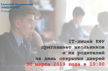 30 марта 2019 года в 10:00 в IT-лицее Казанского федерального университета пройдет мероприятие «День открытых дверей»