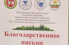 Благодарственное письмо от МОиН РТ вручили педагогическому коллективу за подгтовку и активное участие в Республиканской метапредметной олимпиаде - конкурсе "Эрудит Татарстана - 2024".
