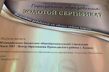 Золотым сертификатом награжден лицей №83 за участие во Всероссийском профориентационном общеобразовательном мероприятии "Горизонты Образования".