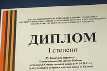Поздравляем Сафронова Л., учащегося 10 класса, победителя и Мухамедгалиеву Н., учащуюся 10 класса, призера Конкурса перевода, посвященного 80-летию Победы в ВОВ, для учащихся старших классов в К(П)ФУ. Молодцы!