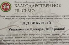 Лицей отмечен Благодарственным Письмом МОиН РТ за большой вклад в организацию и проведение комплекса мероприятий, направленных на создание и функционирование инженерных классов авиастроительного профиля.