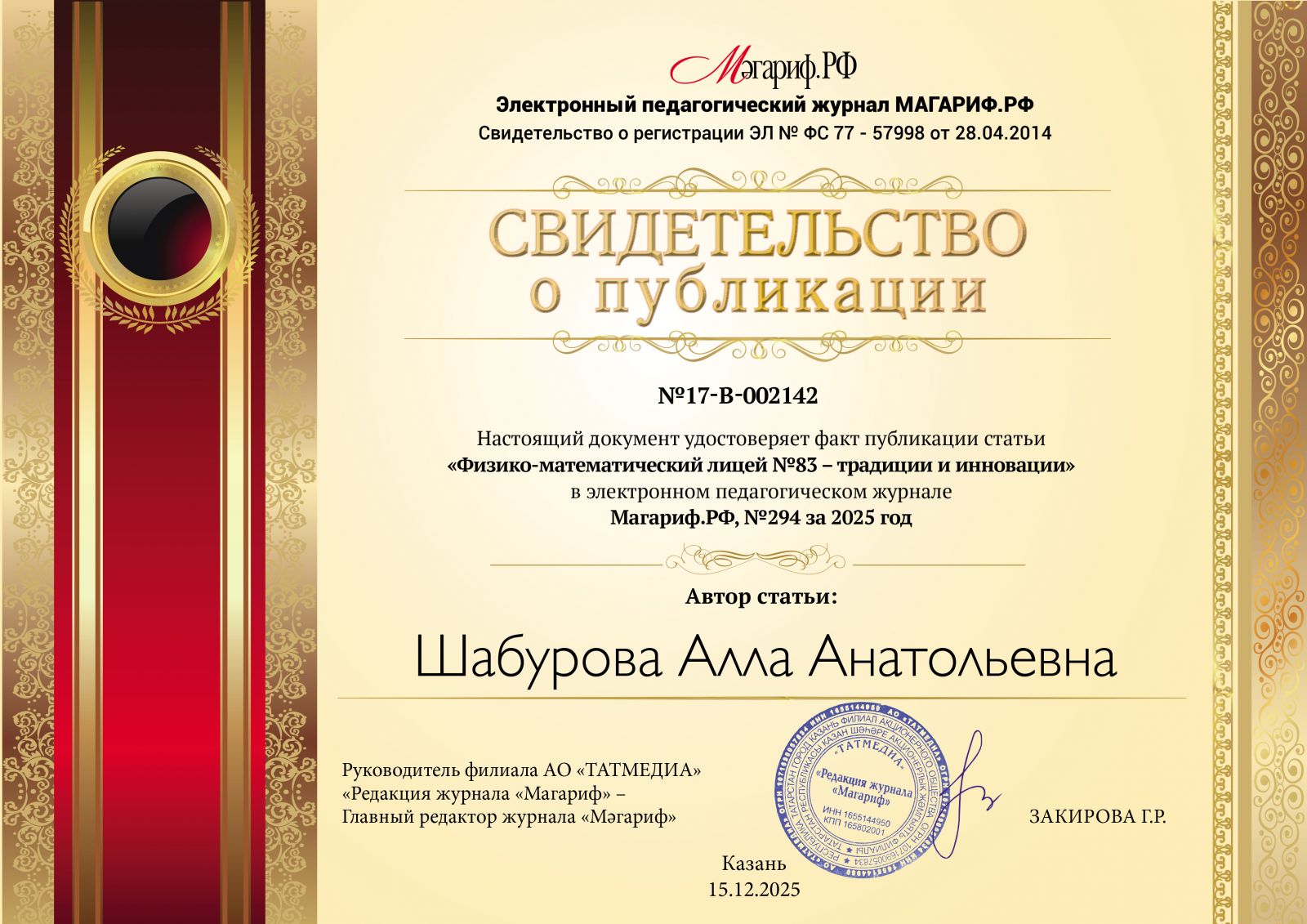 - Бикуева Д.Д., Шабурова А.А. "Физико-математический лицей №83- традиции и инновации