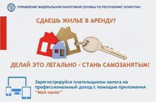 УФМС России по РТ в рамках реализации пилотного проекта по применению специального налогового режима" Налог на профессиональный доход" на территории Республики Татарстан информирует "Сдаешь жилье в аренду?Делай это легально- стань самозанятым!"