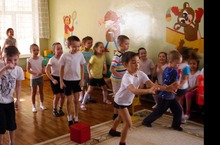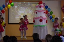Фестиваль детского творчества "Весенняя карусель". Исполнительница песенки о дне рождении Саша Ли, дети подготовительных групп ей помогали.