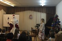 Новогодний праздничный персонаж - Дед Мороз отметил выступление юных пианитов сладкими подарками. Подготовила и провела концерт Заведующая отделения специального фортепиано - М.В.Абитова.