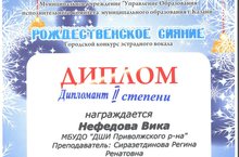 3. Нефедова Валерия -преподаватель Сиразетдинова Р.Р.- Дипломант II степени