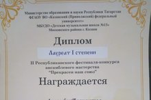 Поздравляем с огромной победой нашу школу и преподавателей с высокими результатами на конкурсе: в номинации "Учреждение" - Детская школа искуств - Лауреат 2 степени; в номинации "Образование без границ" - Сабирзянову Л.К. - Лауреата 1 степени, в номинации "Преданность детству" - Катаргину Л.О. - Лауреата 3 степени, Ханову Г.Р. - Дипломанта 2 степени, Булатову Э.А. - Дипломанта 3 степени .