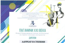 Поздравляем призеров конкурса и их преподавателей: Меньшина Саида - Лауреата 3 степени, преп.Забазайченко К.П., Алиеву Лейлу - Лауреата 2 степени, Мухаметзянову Ясмину - Лауреата 2 степени, преп.Филипенко К.П., Баканину Александру - Дипломанта 1 степени, преп. Павлова В.И., конц.Гимадеева А.Б.