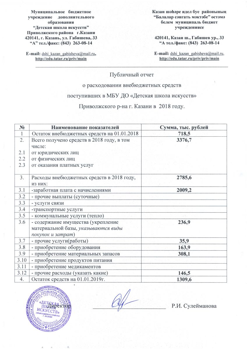 Отчет о привлечении и расходования внебюджетных средств за 2018 год