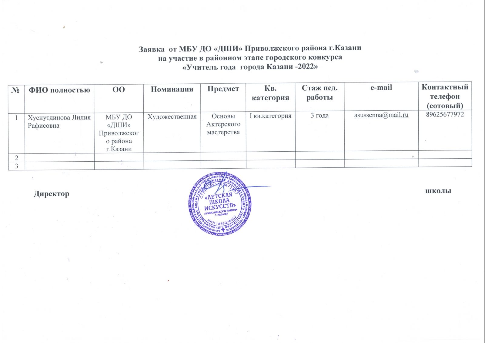 Заявка на участие Хуснутдиновой Л.Р.