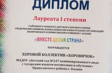 "Вместе целая страна" диеп исемләнгән Идел буе һәм Вахитов районнары арасында уздырылган балалар хор коллективлары бәйгесендәге җиңүебез белән котлыйбыз. Музыкаль җитәкчебез Ихсанова Светлана Константиновнага, тәрбиячеләребез Багаутдинова Гөлфия Наилевнага, Шайдуллина Ильзия Ильдусовнага, балаларны әзерләргә булышкан әти-әниләргә рәхмәтебезне белдерәбез.
